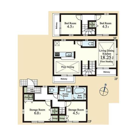 中野区野方1丁目、3階建ての2SLDK